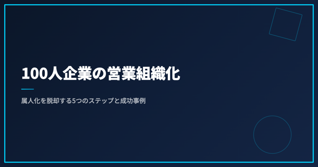 100人規模の営業組織化は、「プロセスの可視化→行動の型化→マネジメント層の再定義→KPIの統一→改善サイクルの定着」の5ステップで進めます。ツール導入や研修だけでは組織化は完了せず、振り返りと改善が途切れない仕組みをつくることが本質です。