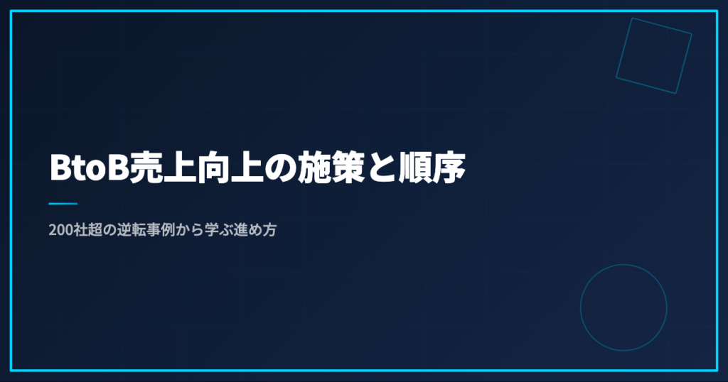 BtoBの売上向上施策は、集客・成約率・客単価の3要素を分解し、ボトルネックがどこかを診断することから始まります。施策を増やす前に、売れる型の可視化とKPI整合という前提を整えると、投資対効果が安定します。