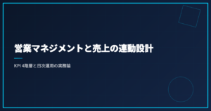 KPI連動の具体設計は、営業マネジメントと売上の連動設計を参照すると理解しやすい。売上予測の精度を高める観点は売上予測の精度向上でも掘り下げています。