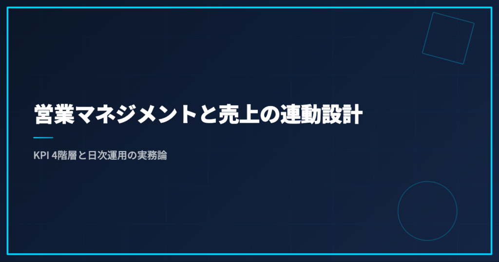 営業マネジメントと売上の連動設計は、2つの軸で整理できます。縦軸はKPIの階層構造、横軸はマネジメント接点の設計。