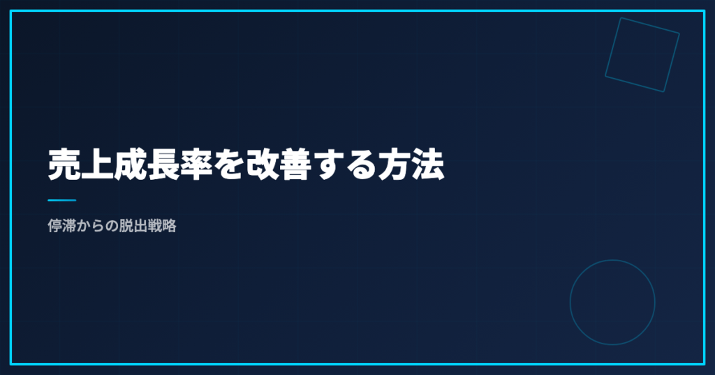 売上成長率の改善は、値下げや集客強化の前に、売上を商談数・受注率・平均単価・継続率の4因数に分解し、ボトルネックから営業組織のレバーで立て直す順序で進めます。KPI再設計と商談レビューを改善ループに乗せることで、成長率は再現性を持って回復するのです。