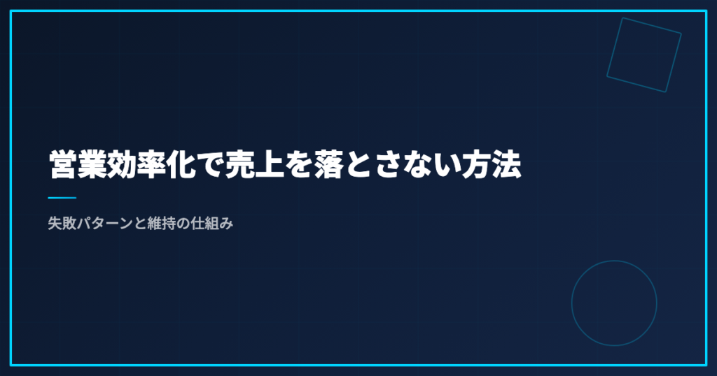 本記事では、効率化で売上が落ちる3つの構造的原因を整理したうえで、売上を維持しながら効率を高める5ステップの設計手順を解説します。さらに、成果が出る組織と出ない組織の違い、失敗を防ぐチェックポイントまでを一本の記事でカバーしています。