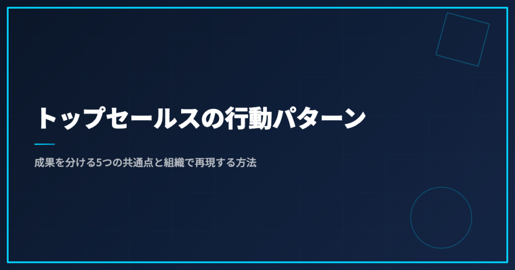 トップセールスの行動パターン|成果を分ける5つの共通点と組織で再現する方法