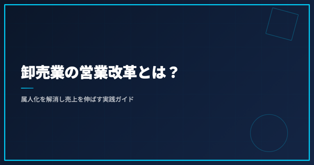 卸売業の営業改革は、仲介価値の縮小・属人化・提案価値の不在という3つの構造原因を直視するところから始まります。改革の優先順位は「商談情報の可視化→提案の標準化→レビューと改善ループの定着」であり、この順序を守ることが成果に直結します。
